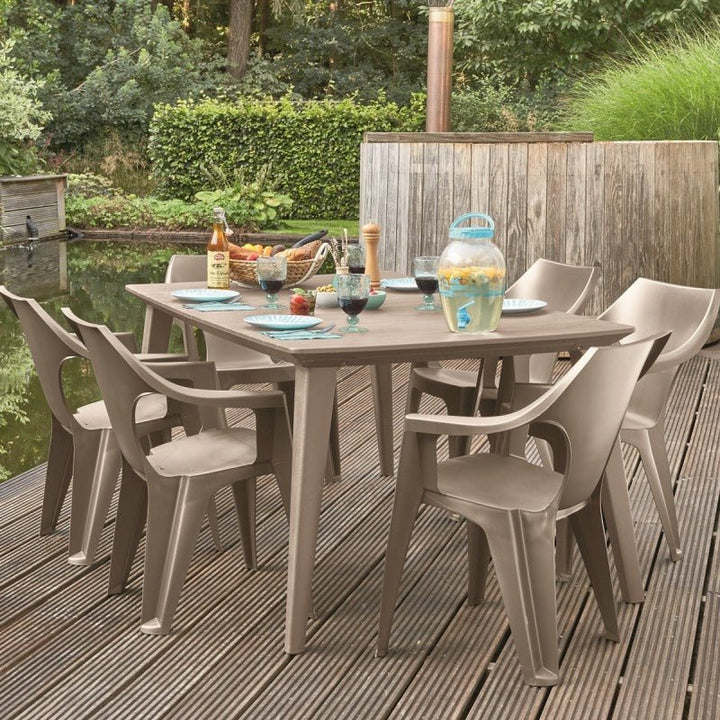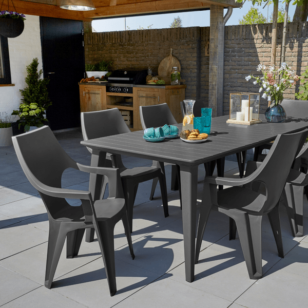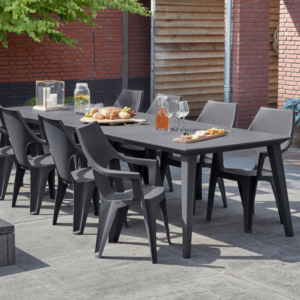 - جلسة خارجية من طاولة و 10كراسي بذراعين من البولي بروبلين المقاوم لأشعة الشمس- لون الجرافيت (رمادي غامق) (عرض خاص)