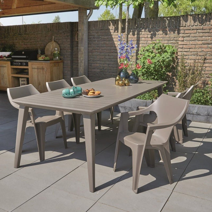 جلسة خارجية صناعة هولندية من طاولة و 10كراسي بذراعين مقاوم لأشعة الشمس (عرض خاص)
