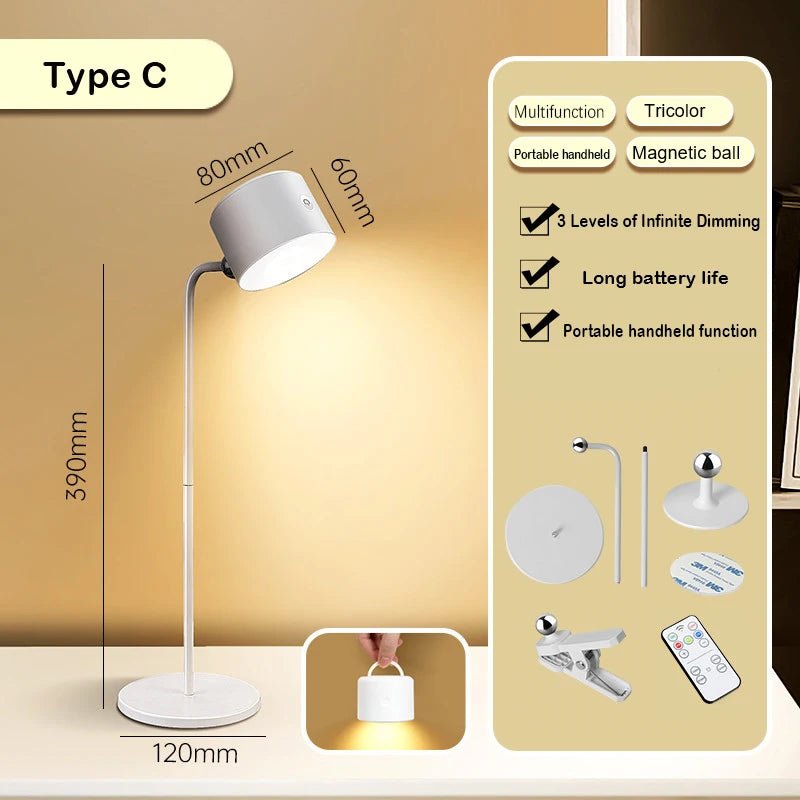 مصباح طاولة LED متعدد الوظائف مع شحن Type-C - مصباح دراسة ومكتب مع تحكم عن بعد، مصباح ليلي قابل للتعديل