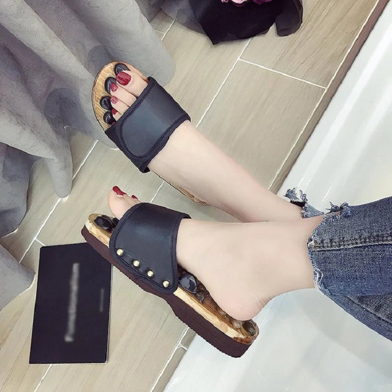 صنادل مساج بالأحجار الطبيعية – حذاء تدليك بنظام الانعكاسات لتحفيز نقاط القدم