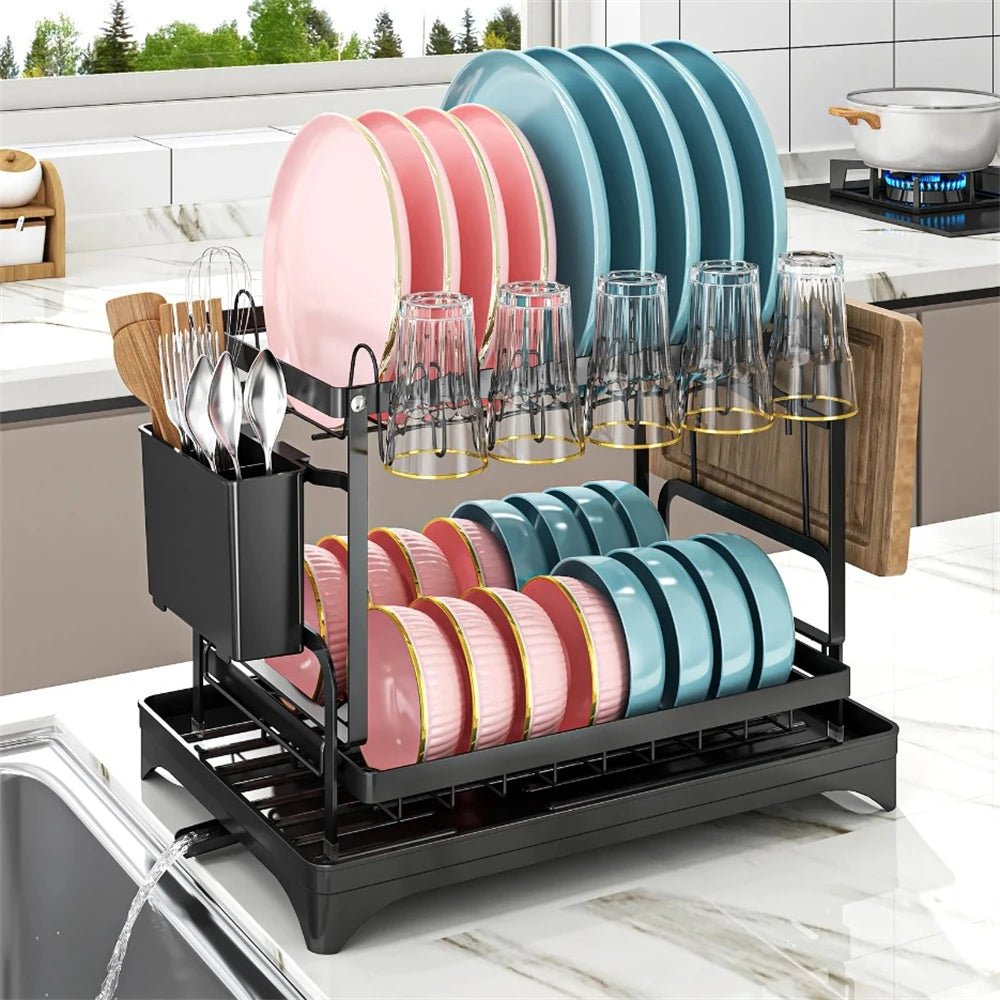 - حامل أطباق متعدد الأغراض من مستويين مع حامل أكواب