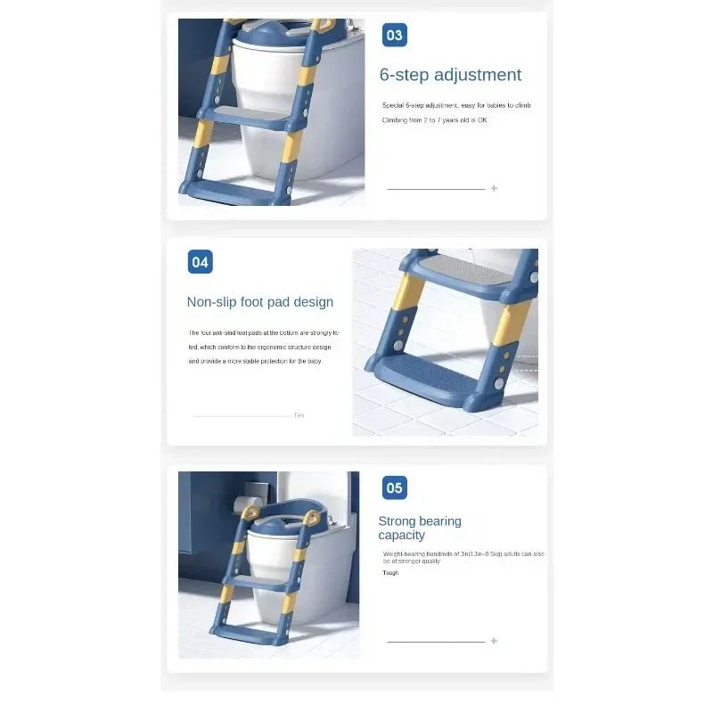 ● يحتوي على درجات مانعة للانزلاق ومقعد مريح، مصمم خصيصًا لراحة الأطفال ويمنع الخوف من الجلوس على المرحاض