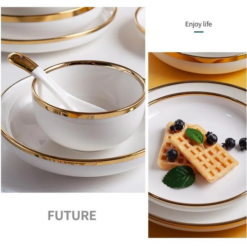 - جميعها مصنوعة من السيراميك الآمن للطّعام مزينة بحافة باللون الذهبي