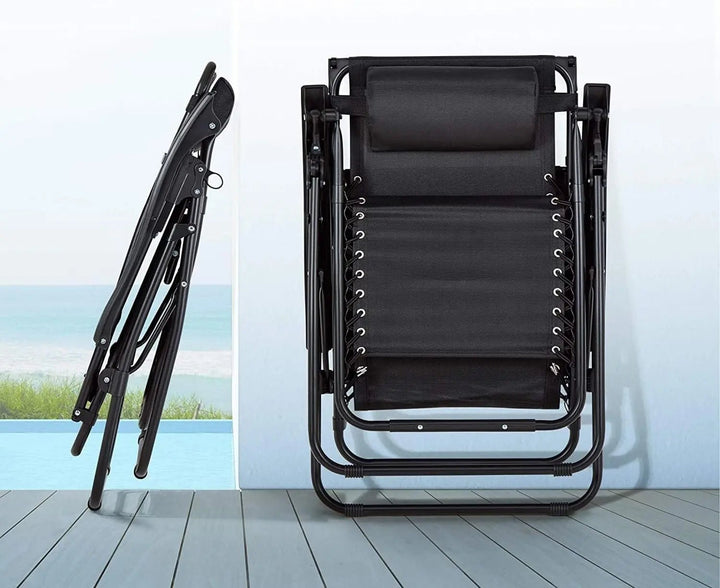 كرسي استرخاء خارجي قابل للطي مع وسائد وحامل أكواب، أسود.