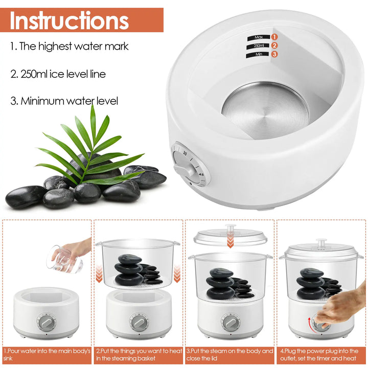 - متعدد الاستخدامات: يمكن استخدامه لتسخين مناشف السبا، تدفئة الأحجار للمساج، وتعقيم المناشف.