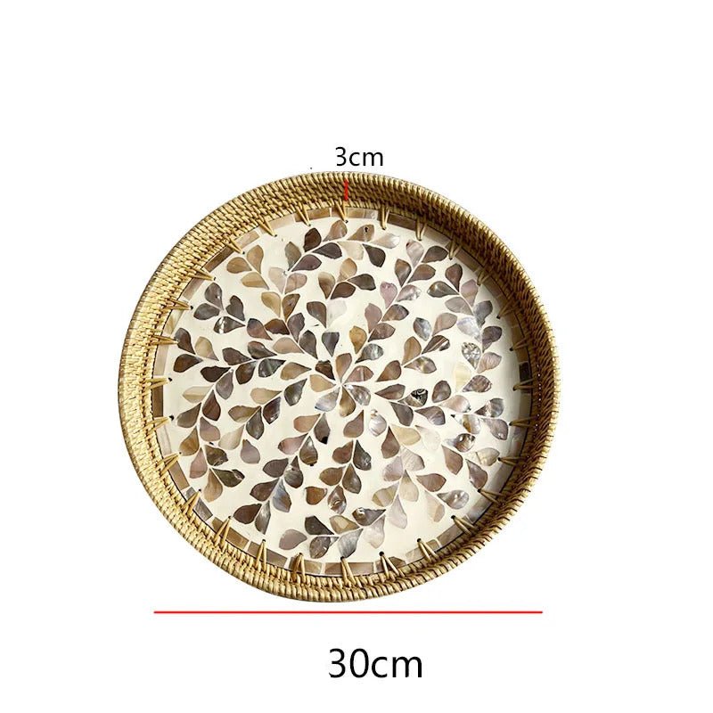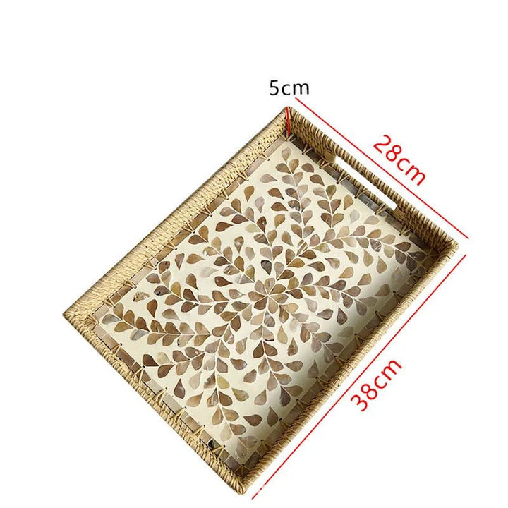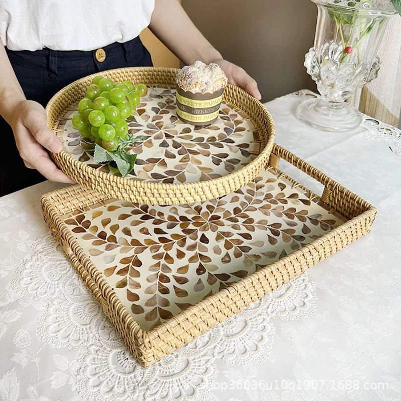 - صينية مستطيلة من خشب الراتان مصنوعة يدويا
