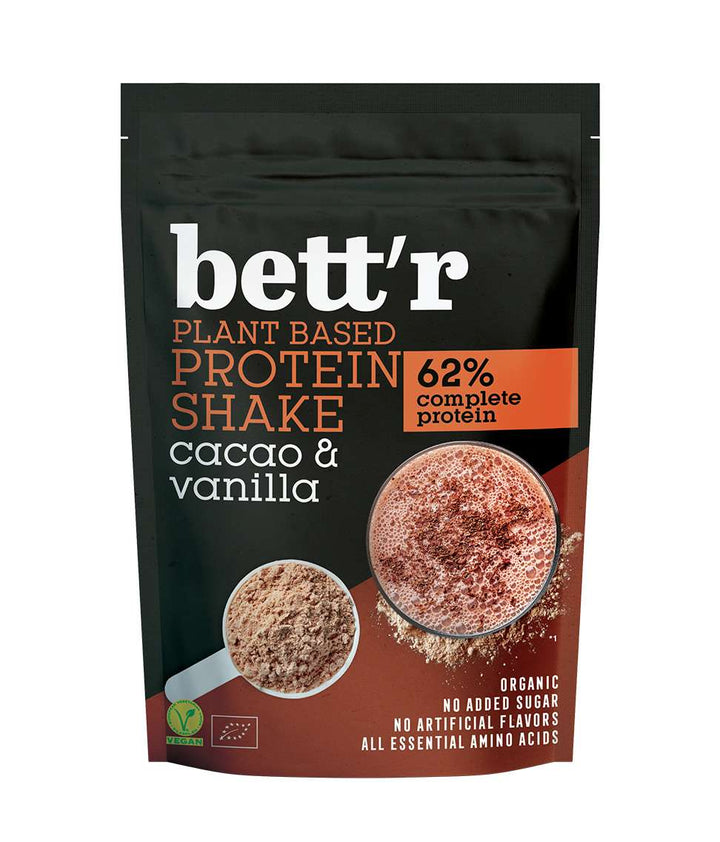 بودرة Protein Shake Cacao & Vanilla من SO Bett’r هي مزيج بروتيني نباتي عالي الجودة، يحتوي على جميع الأحماض الأمينية الأساسية، كما أنها عضوية بالكامل وخالية من السكر المضاف والنكهات الصناعية. يجمع هذا الشيك بين نكهة الكاكاو الطبيعية ولمسة خفيفة من الفانيلا ليضيف طعمًا لذيذًا ومتوازنًا إلى السموذي و وجبات الإفطار أو الحلويات المنزلية، مع زيادة محتوى البروتين بطريقة صحية وسهلة. يُنصح باستخدام ملعقتين كبيرتين (30 غرام) لكل حصة للحصول على مزيج غني بالقيمة الغذائية والنكهة الطبيعية.