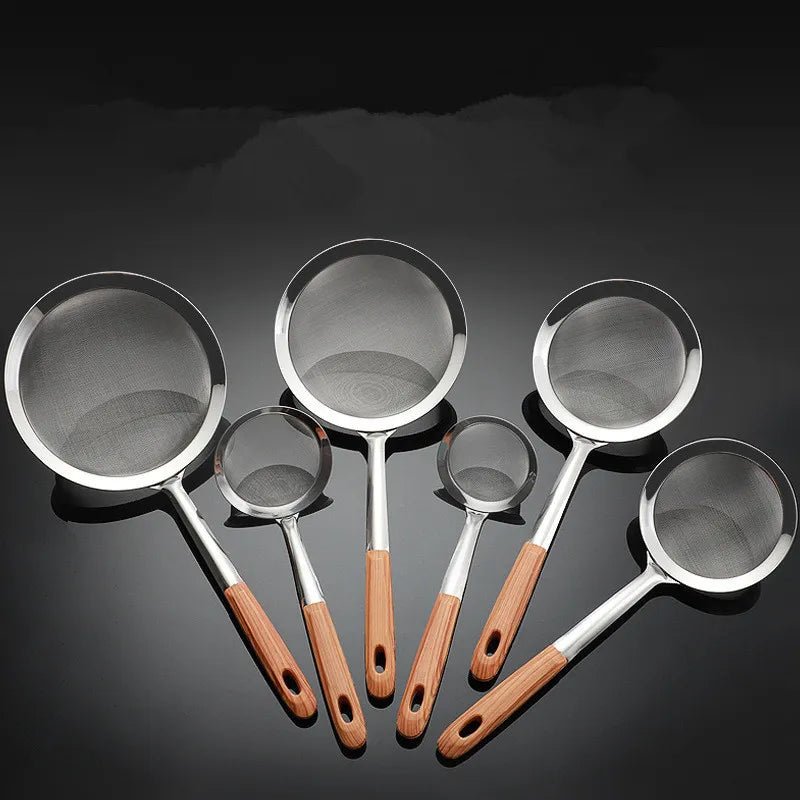 - مصفاة شبكية من الستانلس ستيل مع مقبض خشبي