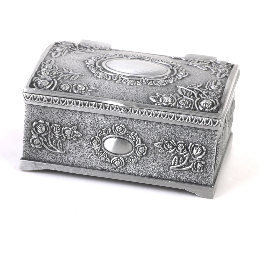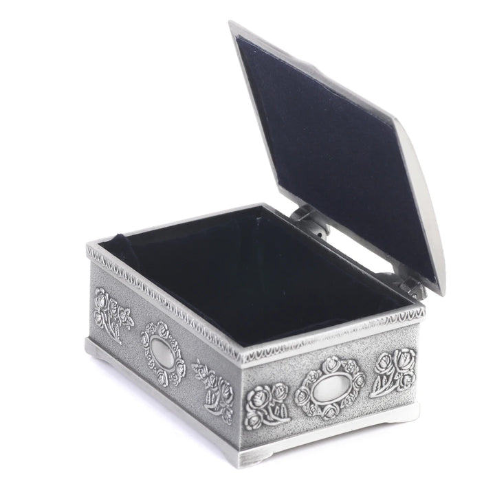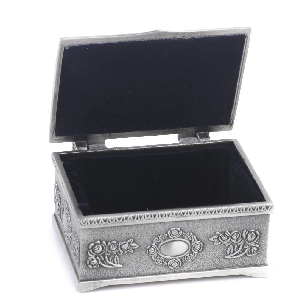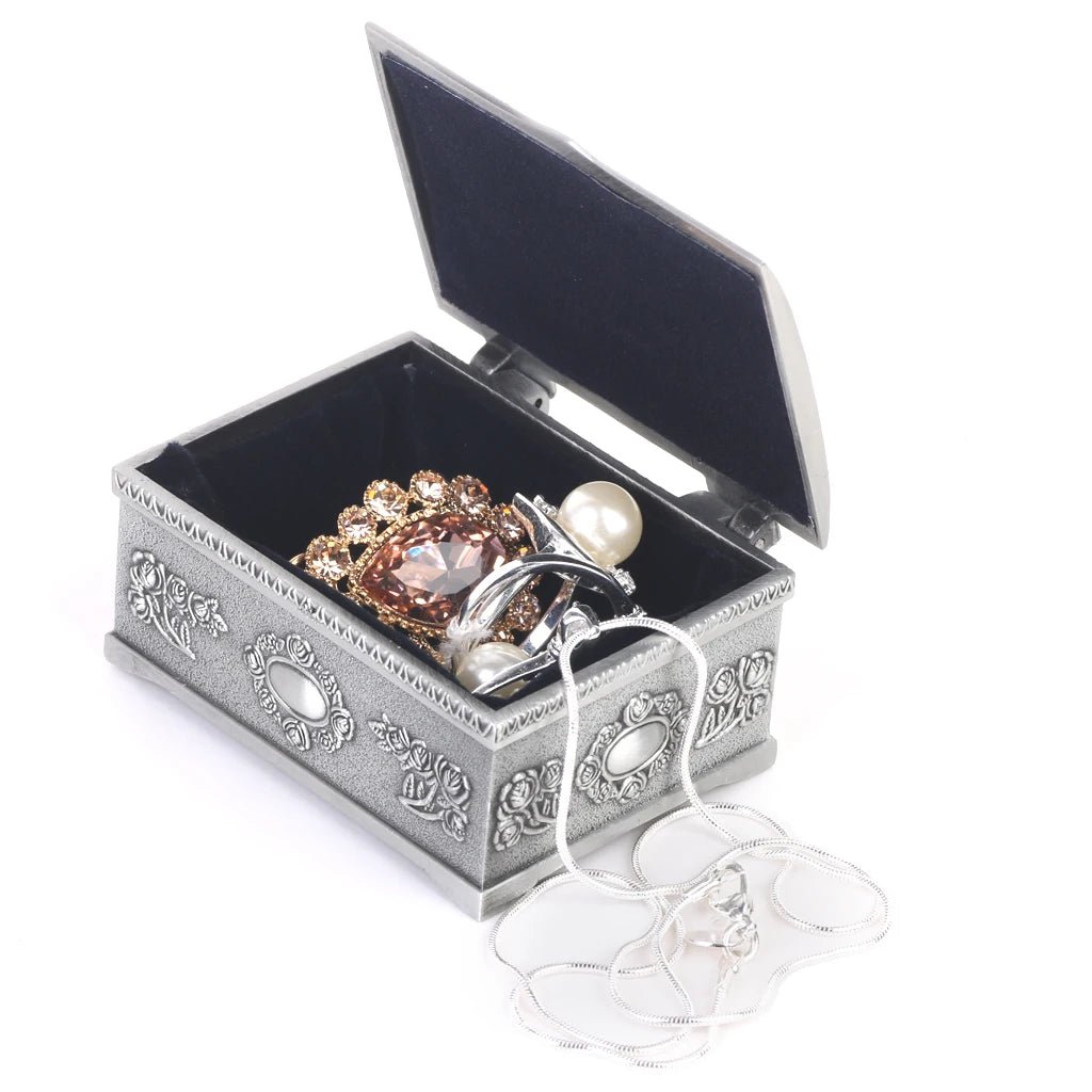 صندوق مجوهرات من القصدير مبطن بحشوة مخملية