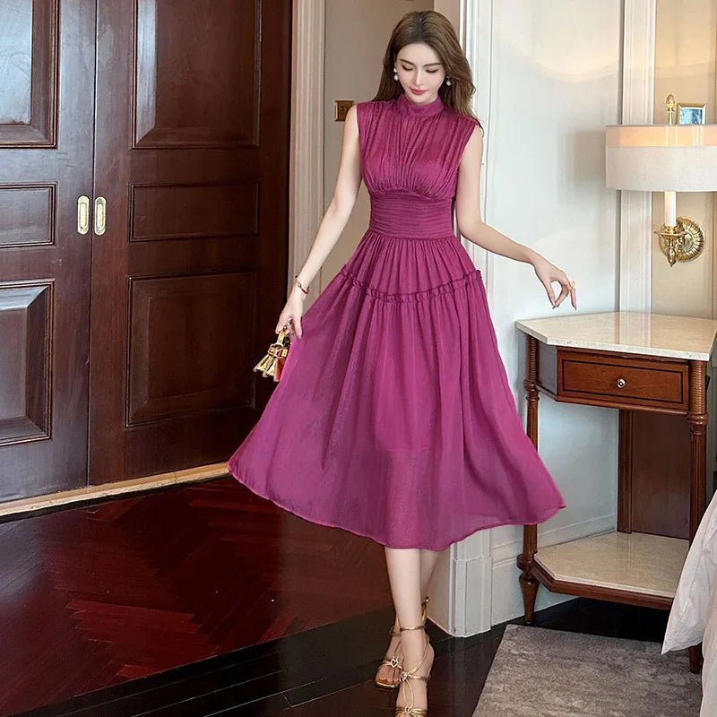 - فستان صيفي من الشيفون عالي الخصر بدون أكمام