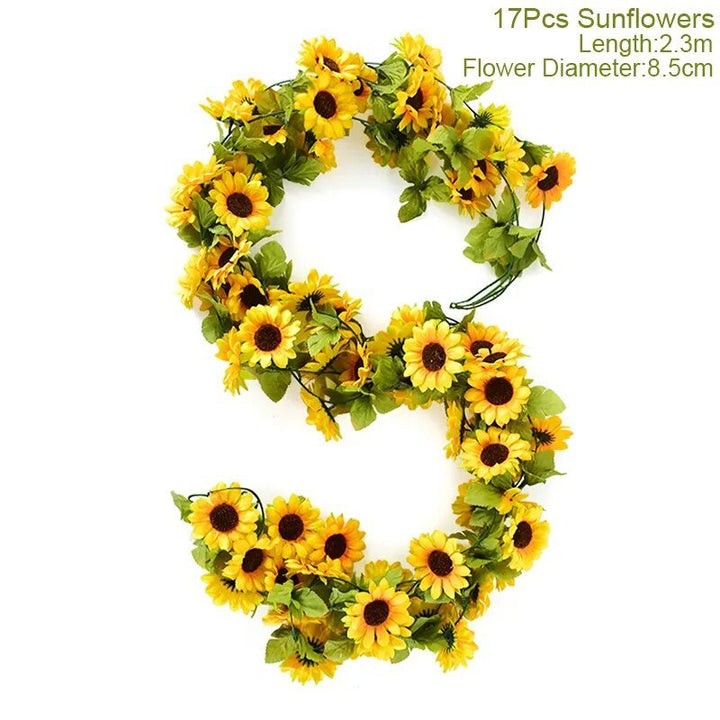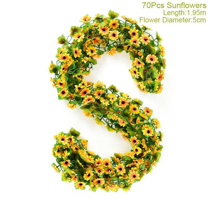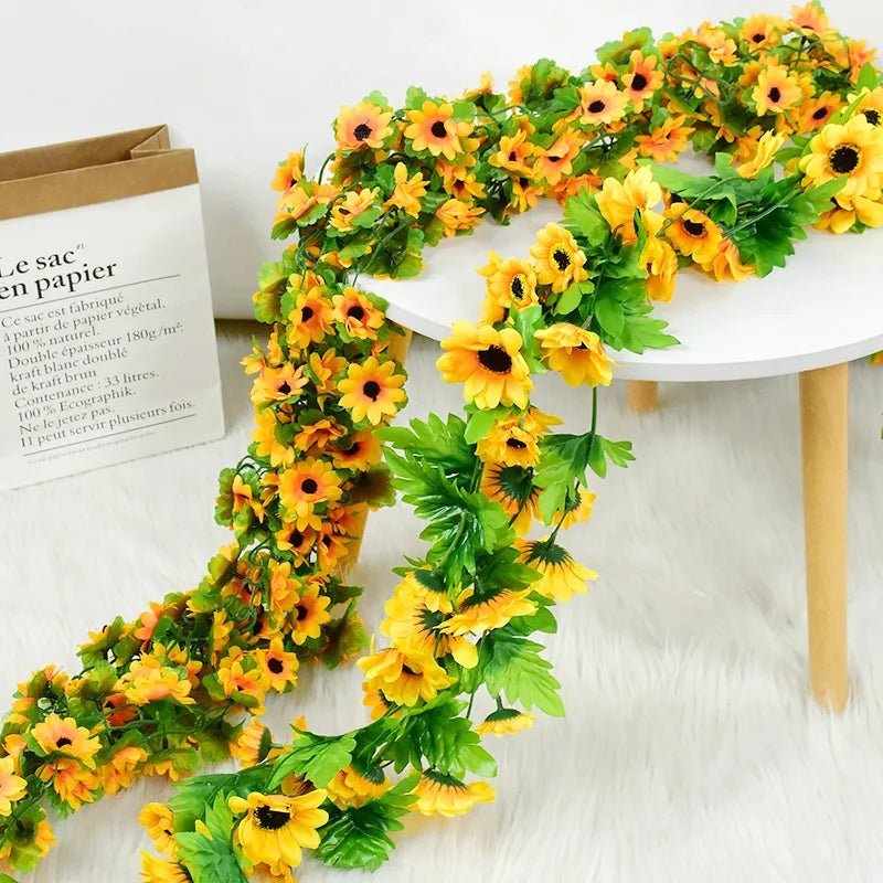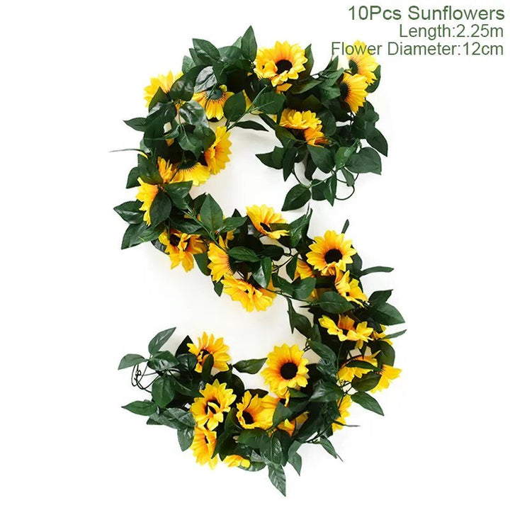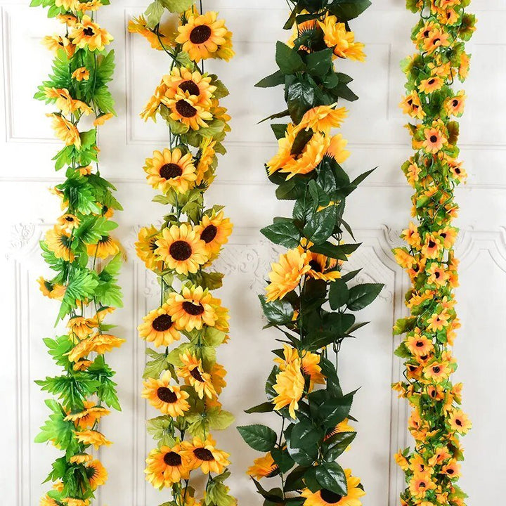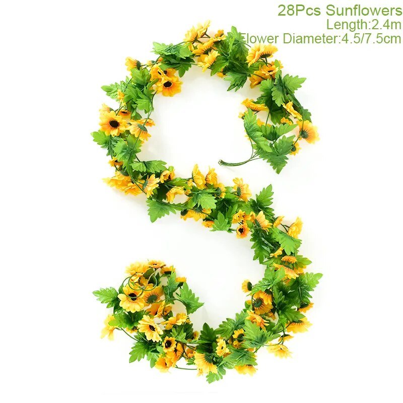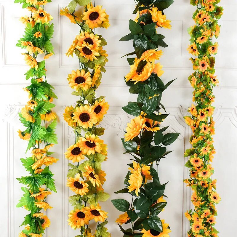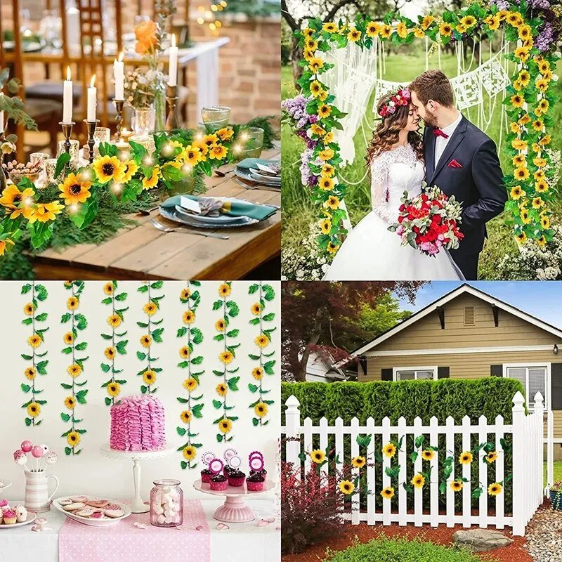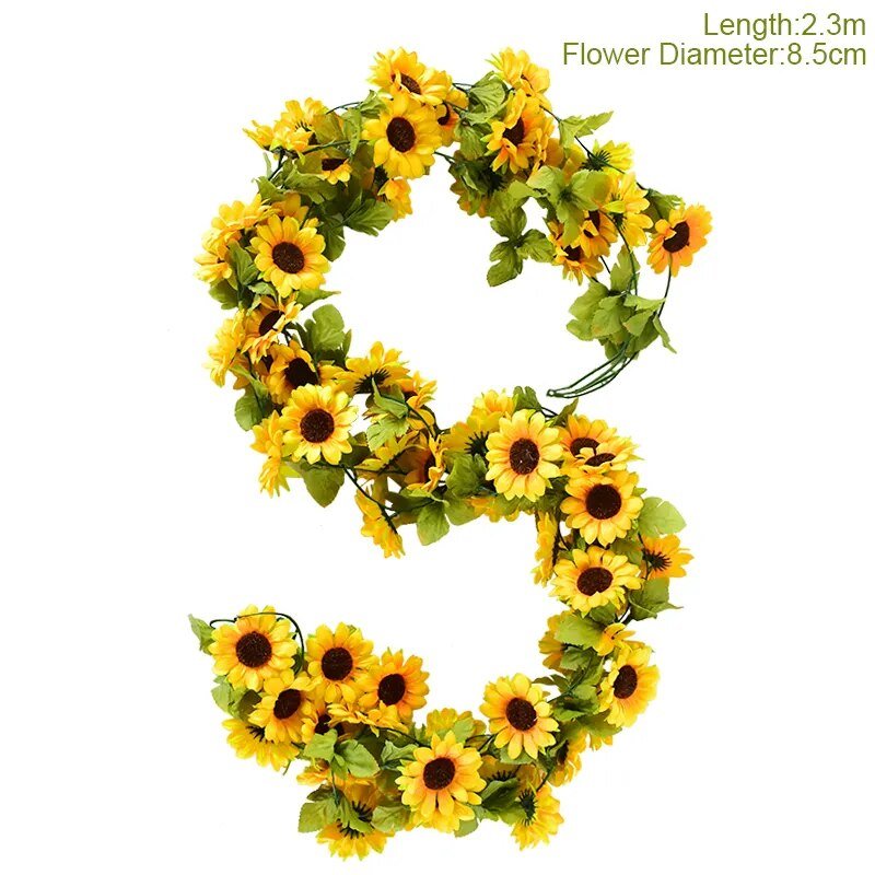 - أفرع ورق شجر نبات صناعي مع زهور عباد الشمس 70فرع 1.95متر