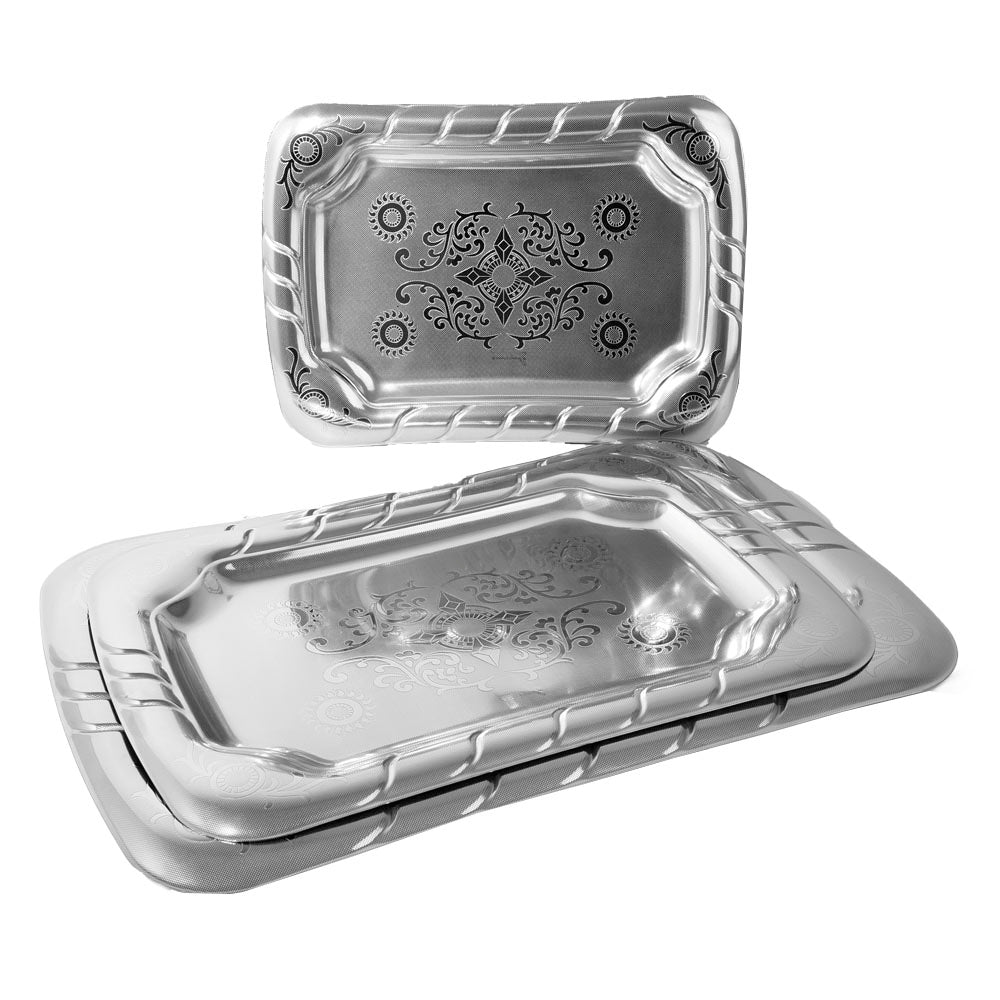 طقم صواني تقديم ستانلس ستيل 3قطع احجام مختلفة