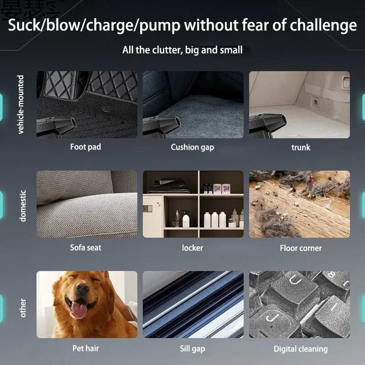● مزود بمحرك بدون فرش ومخرج هواء مركز، ما يمنحك تنظيفًا دقيقًا للأجهزة، لوحات المفاتيح، السيارات وغيرها بسهولة